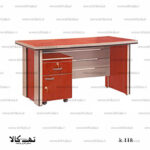 میز اداری K118با طراحی ساده و زیبا، ملامینه است و خط و خش نمی افتد. این میز در پنل بیرونی خود با قطعات مختلف چوب نمایی شبیه به میز فرید دارد. با این تفاوت که همراه این میز یک فایل مجزا که یک کشو و یک کمد دارد، نیز هست.