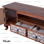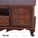 این میز یک تکه بوده و به صورتی طراحی شده تا به راحتی با لوازم شما ست شود استفاده از طرح های ظریف بر روی درب کشو ها و کمد تاثیر زیادی در زیبایی این محصول داشته است