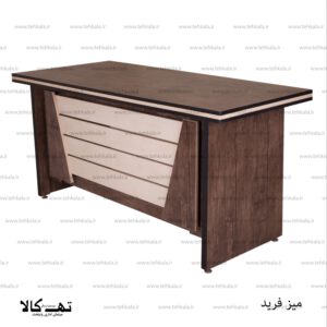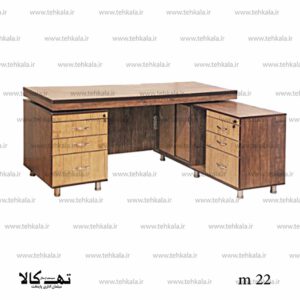 - دارای دو کشوی روی هم در یکی از طرفین و یک کشوی پهن در وسط