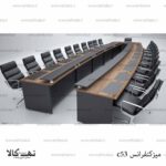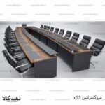 دارای طرحی زیبا و مدرن بوده این میز ۲۱ نفره می باشد و فضا برای هر نفر ۷۰ سانت می باشدc53 میز کنفرانس