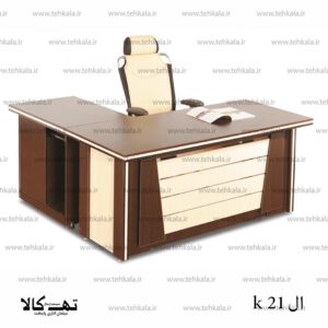 طراحی ال این میز فضای کافی را در اختیار مدیران قرار می دهد همچنین دارای یک فایل سه کشوی قفل دار نیز هست